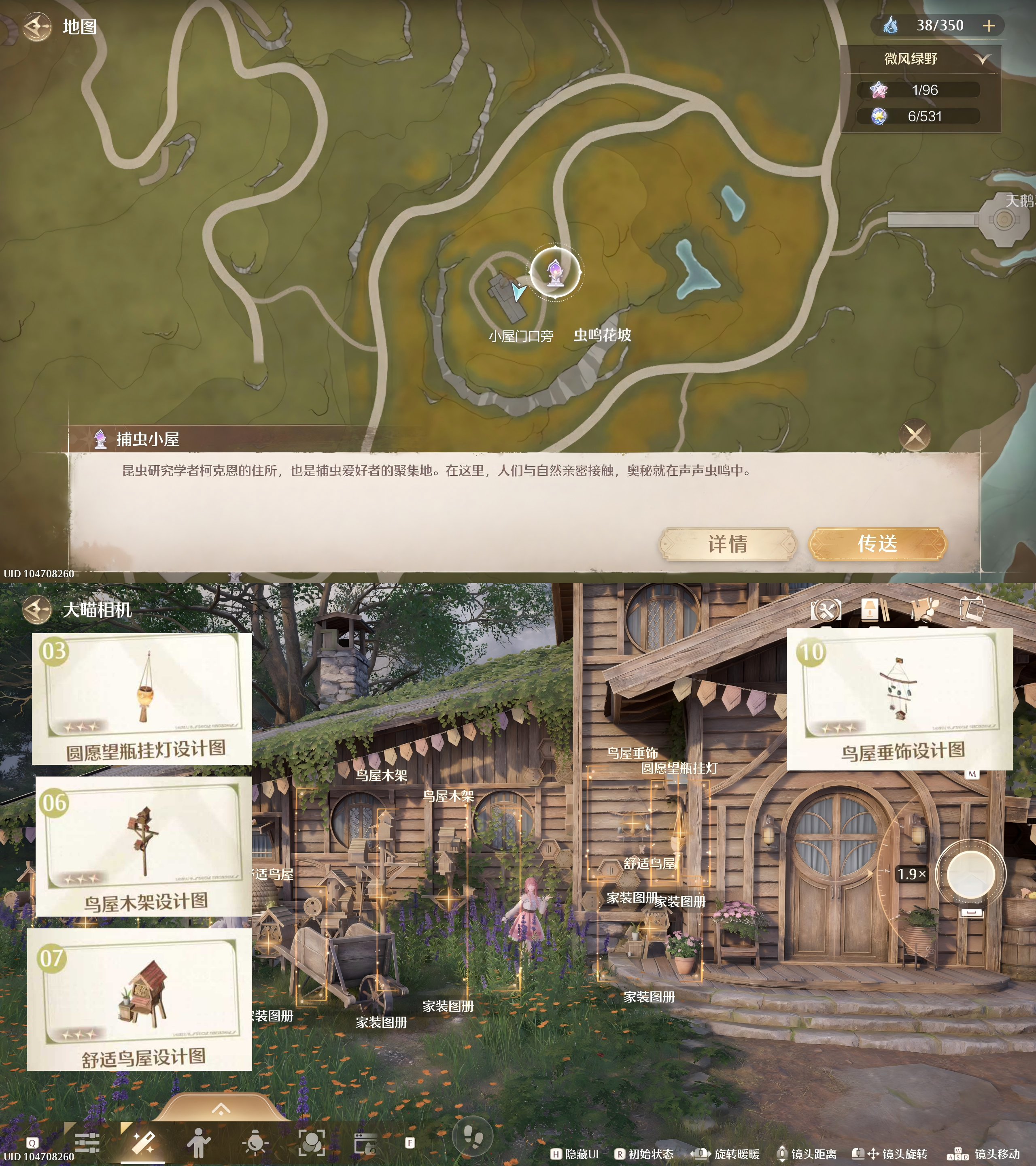 🔟鸟屋垂饰(P10):与3号6号7号家具一起,在【捕虫小屋】门口旁;
