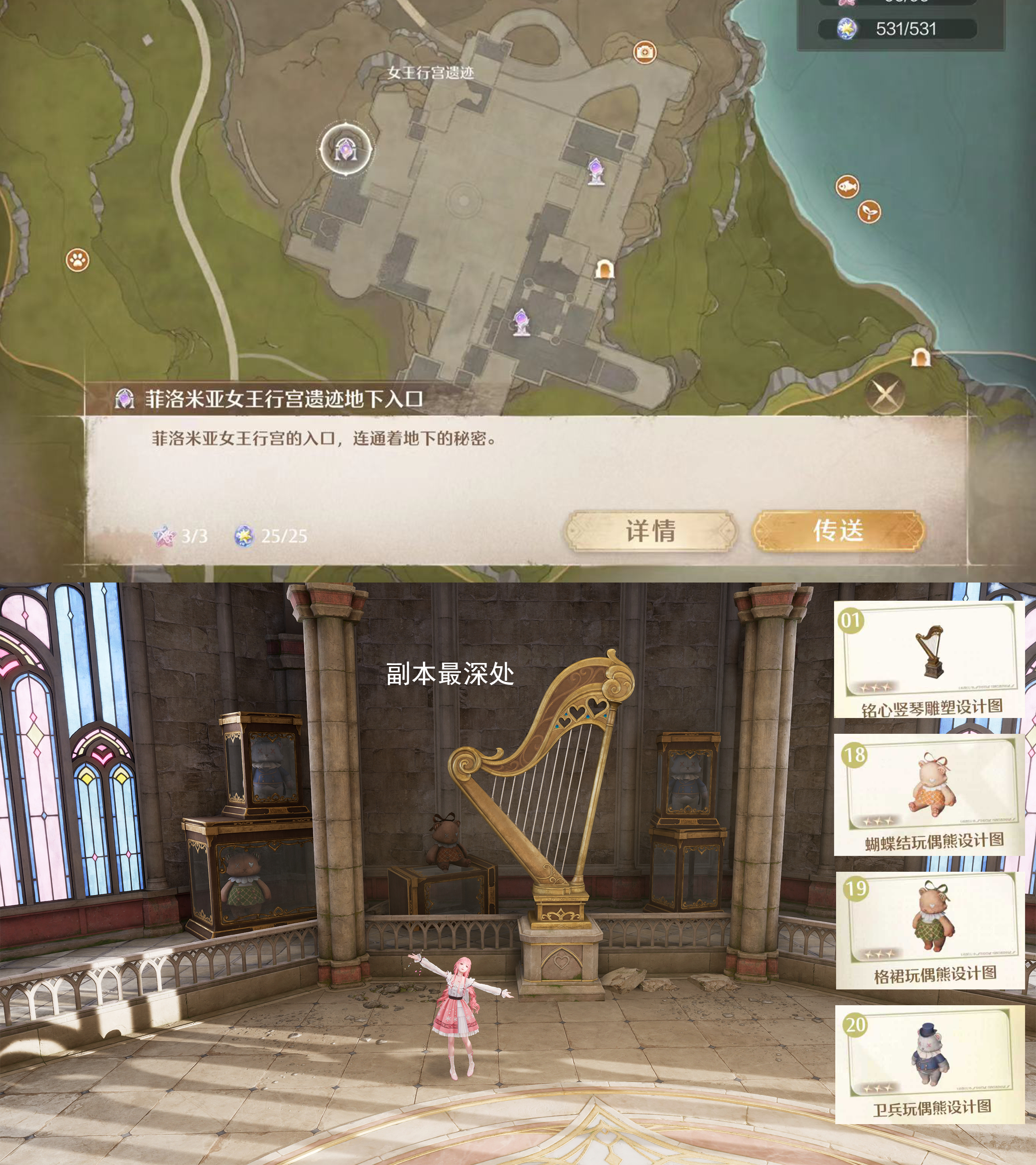 1️⃣8️⃣蝴蝶结玩偶熊(P13):与1号19号20号家具一起,在副本【菲洛米亚女王行宫遗迹】最深处;