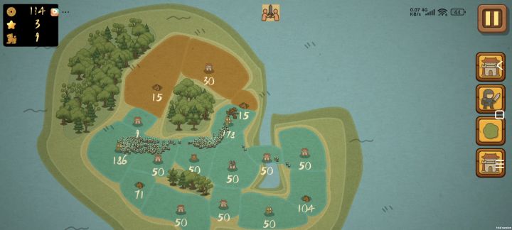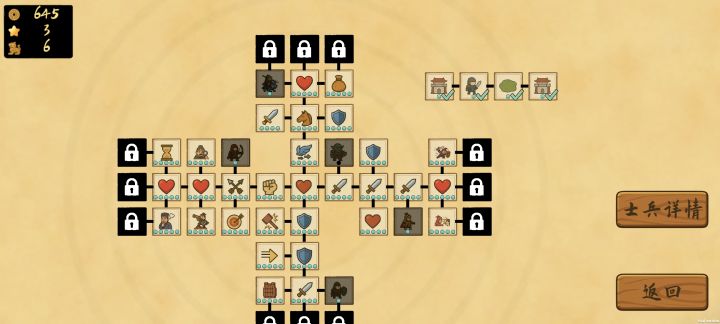 这游戏就以前的网页小游戏改的,有点巧思,但不多,就是增加了几个兵种,几个建筑。宝箱无脑选造兵相关的,占点+10兵、所有城池5%、5%一次招两个都行。o