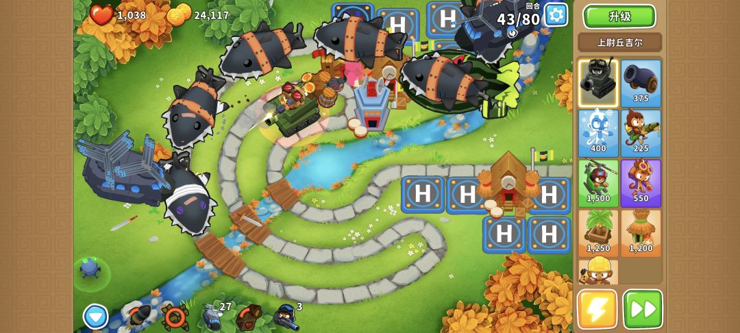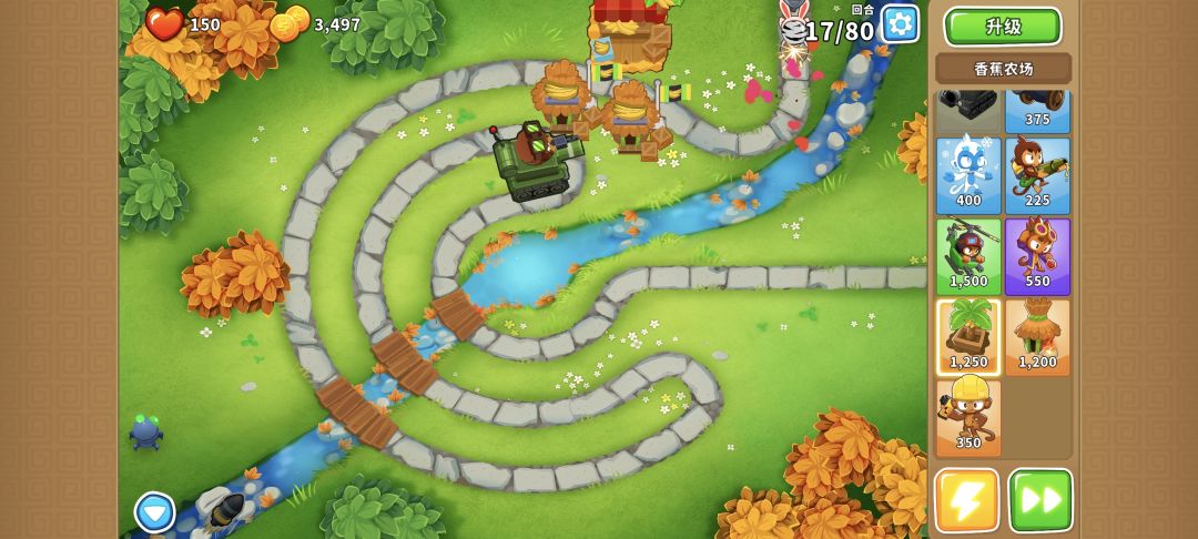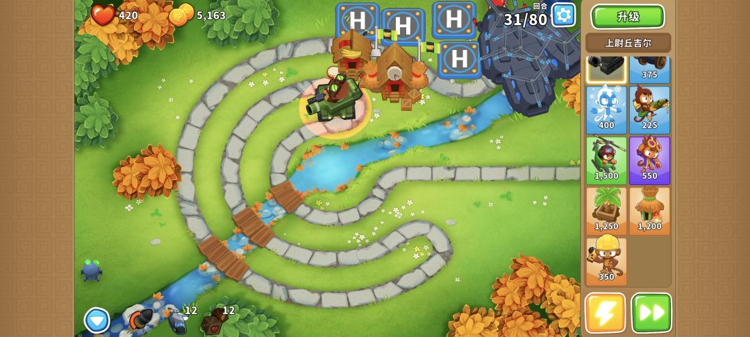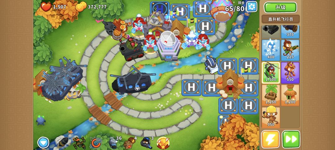 在004猴村范围里的直升机,每回合能赚1550*2*1.2=3720金币,所以后续升一个050直升机,并且继续堆040直升机就行了。