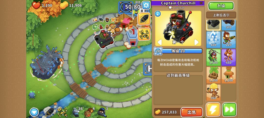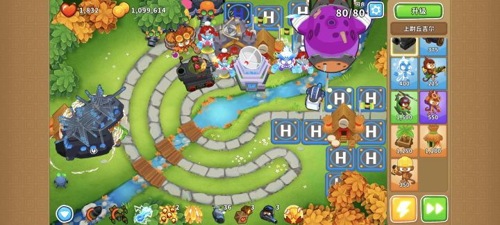 快一点的话,50回合就能把英雄升到满级,60回合就能做到永啤+10层永久超频+脆变+胶水易伤这些辅助塔全部升满。最后80回合的时候,我也是剩余100万金币。