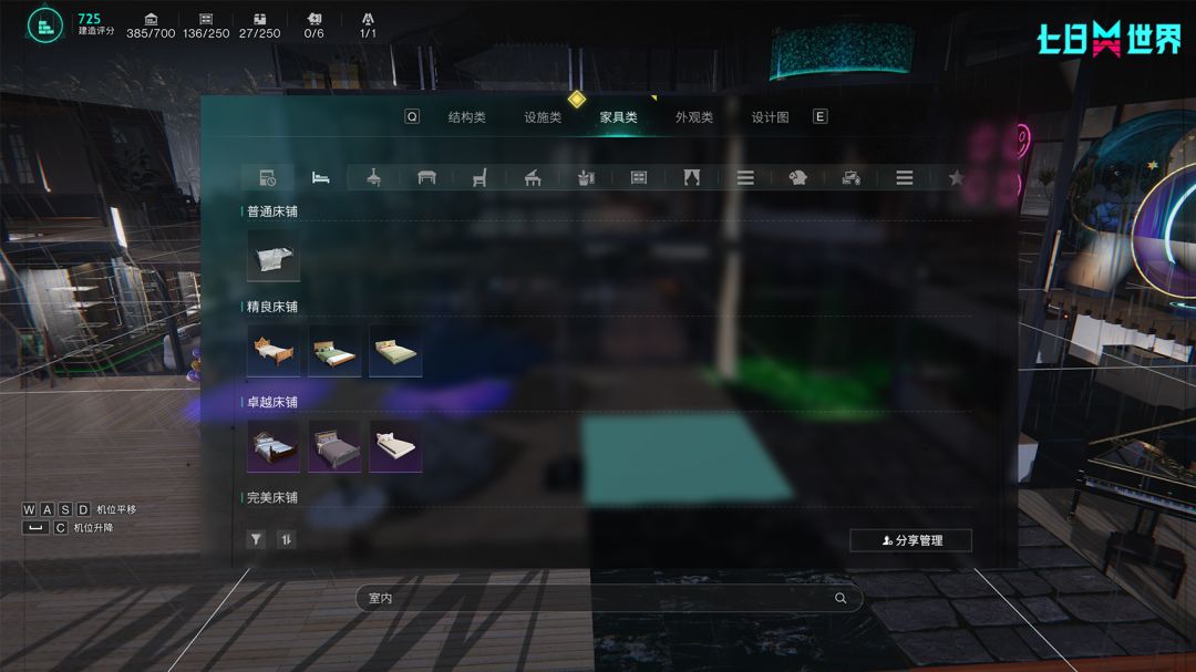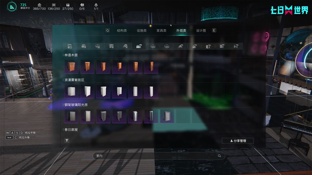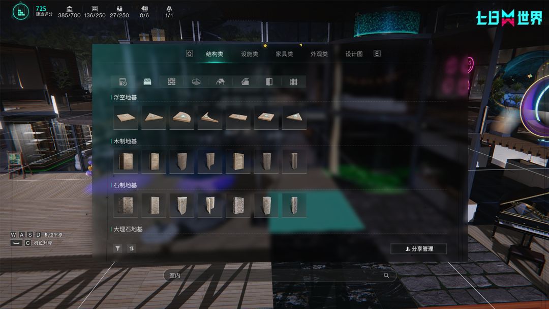 1、优化了建造界面内的热键分类,现在将功能性按键整合至界面右上角,包含:结构替换、网格吸附、显隐管理、飞行视角、领地搬迁。G键结构升级改为结构替换,并集成贴纸替换、皮肤替换。