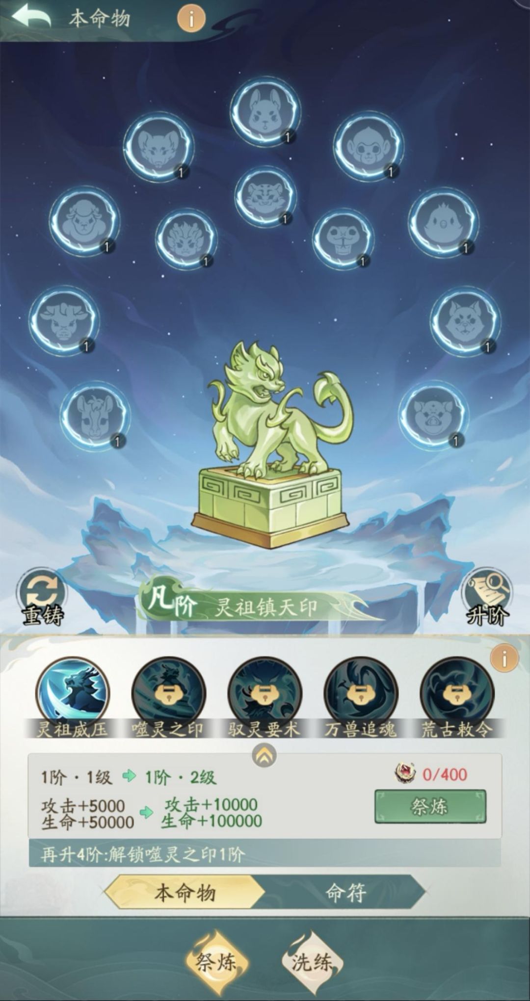 铸成后,道友可对本命物进行祭炼,提升本命物的等级与阶级;同时,还能在其镶嵌十二元辰命符,带来额外的属性加成以及技能效果。
