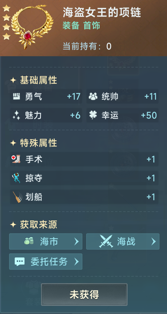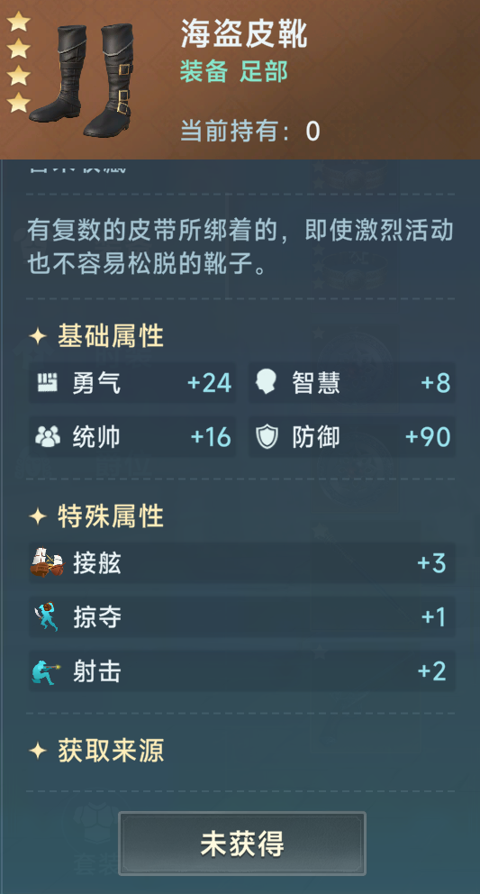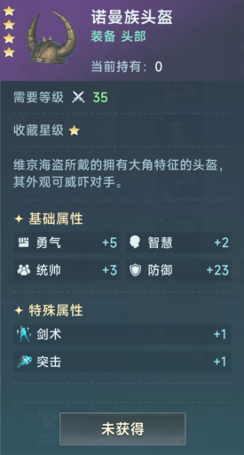 头部我主要推荐海盗头带,1剑术1掠夺,既加了攻击还加掉落。72星光的价格也不是很高,获取就是4星,算是性价比非常高的了。但是如果实在不舍得购买的也可以选择诺曼族头盔,加1剑术和1突击对于白兵都是非常优先的技能。