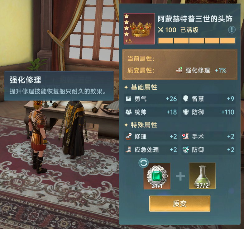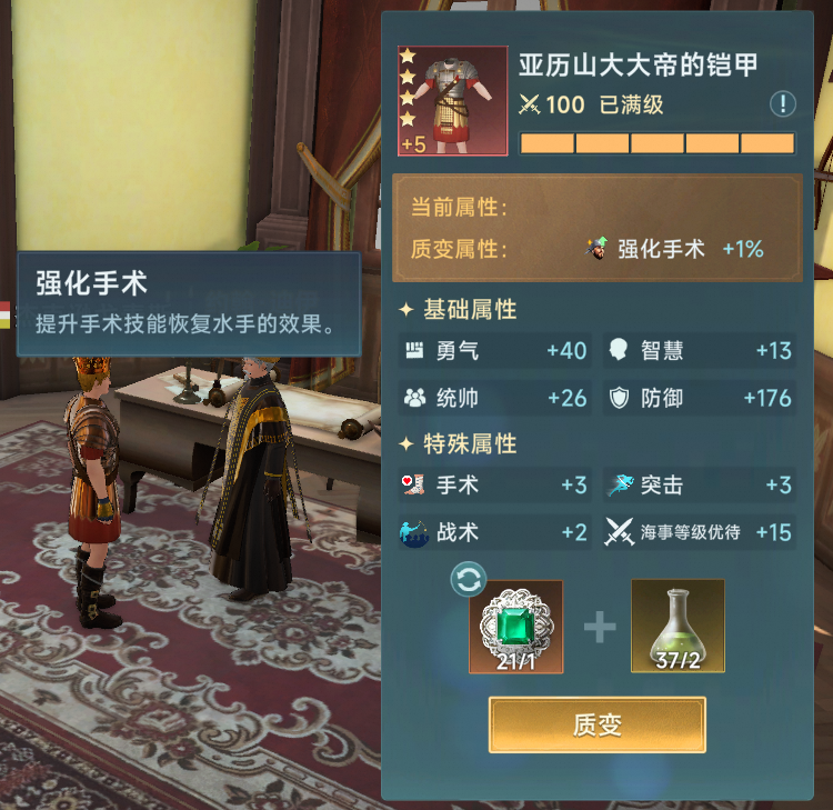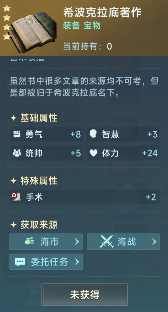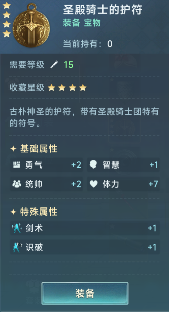 宝物方面,因为低级宝物实在没有特别好的,圣殿骑士的护符搭配一个1星的希波克拉底著作作为过渡装即可。
