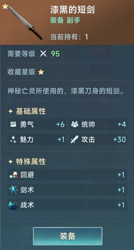 副手推荐漆黑的短剑在南非西南岸冒险获得。