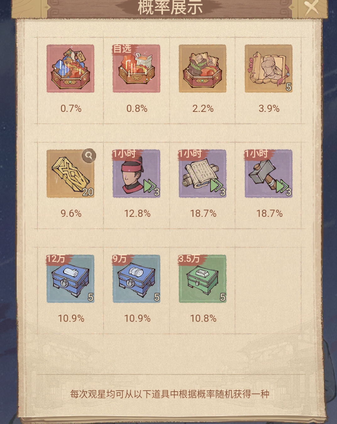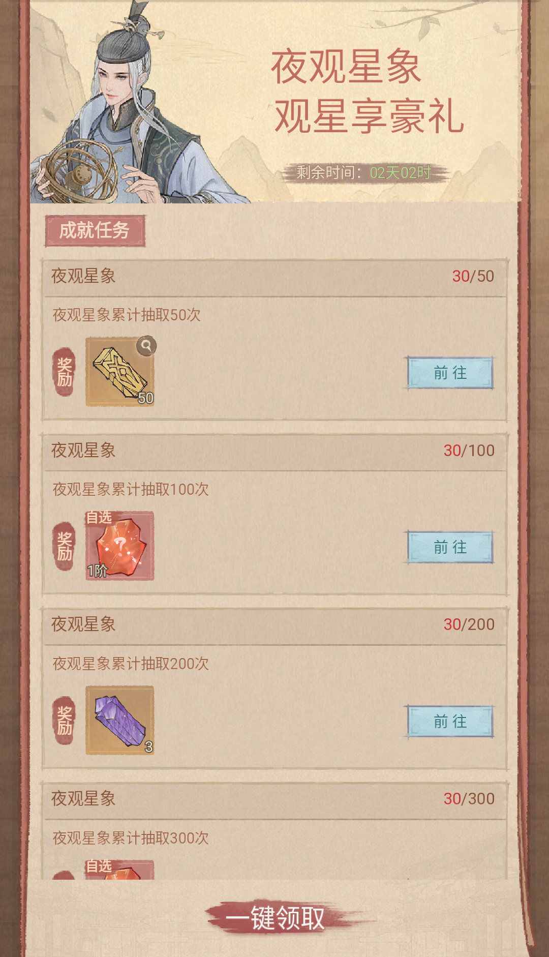 观星道具不过期,每日可通过元宝和任务共获10个。推荐两个时间段抽奖:凌晨刚过或晚上810点,但大奖仍有一定随机性。建议囤两次活动凑100抽,以获取次数奖励。