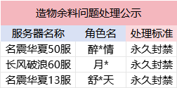 这些账号的角色信息将在本公告中公示,并已被永久封禁。