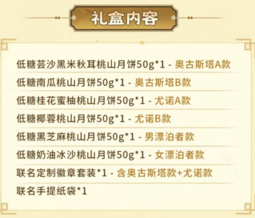 另外,鸣潮与老字号稻香村推出中秋联动礼盒,售价99元。礼盒内含多款以Q版角色形象为主题的月饼、定制徽章及手提袋,设计融合国风元素与Q版形象,兼顾收藏与实用性。想到学校发的月饼了,这算“痛饼”吗话说