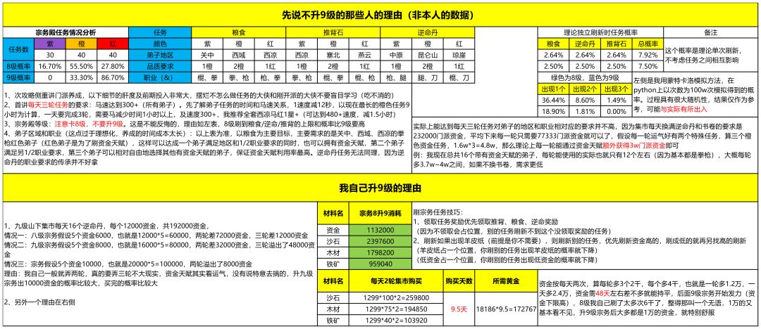 【门派攻略】建筑升级消耗&宗务任务及是否要升九的问题