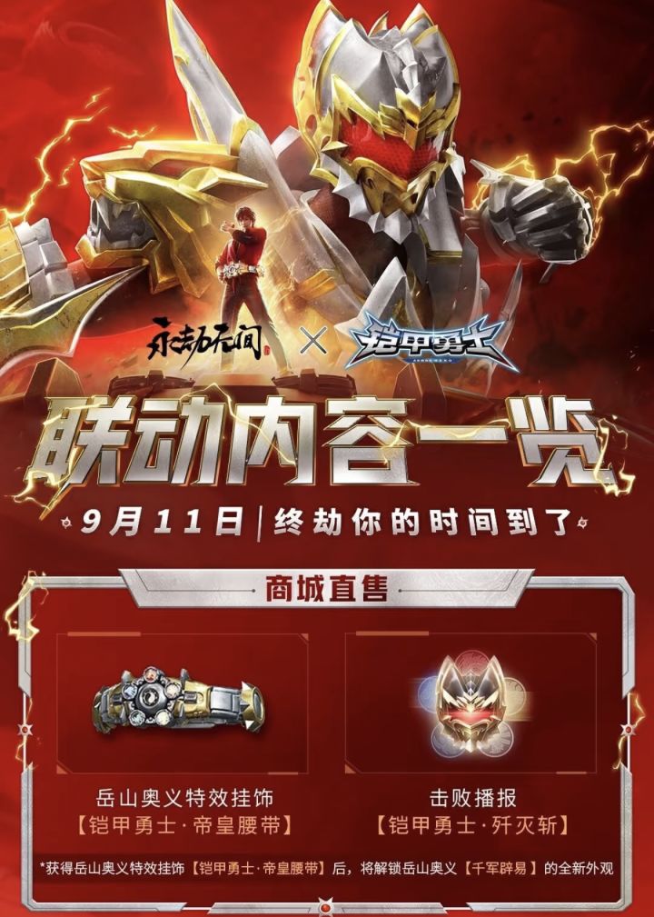 ✅️今日(9月11日),《永劫无间》与《铠甲勇士》的重磅联动正式开启。