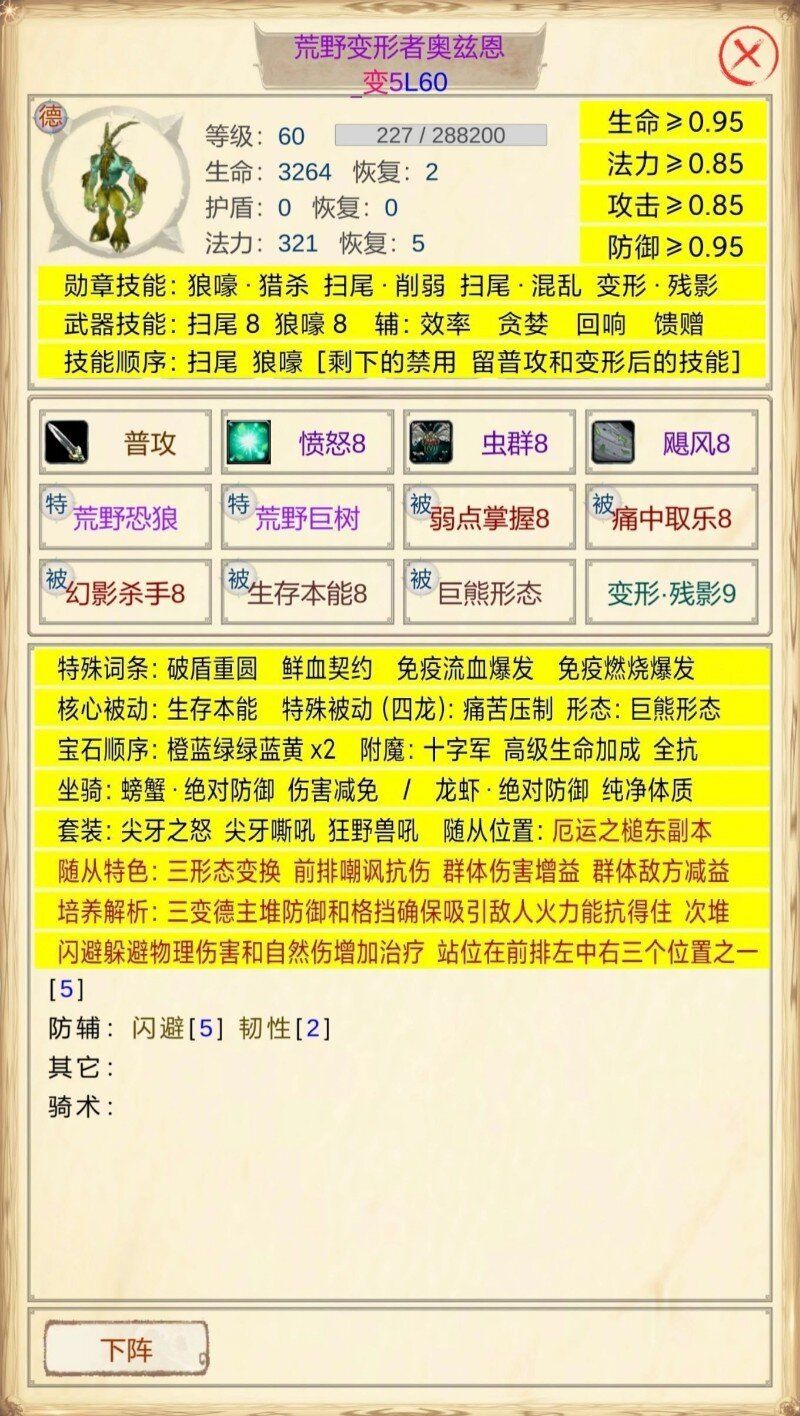 一、通关祖尔格拉布阵容佣兵之”荒野变形者奥兹恩“