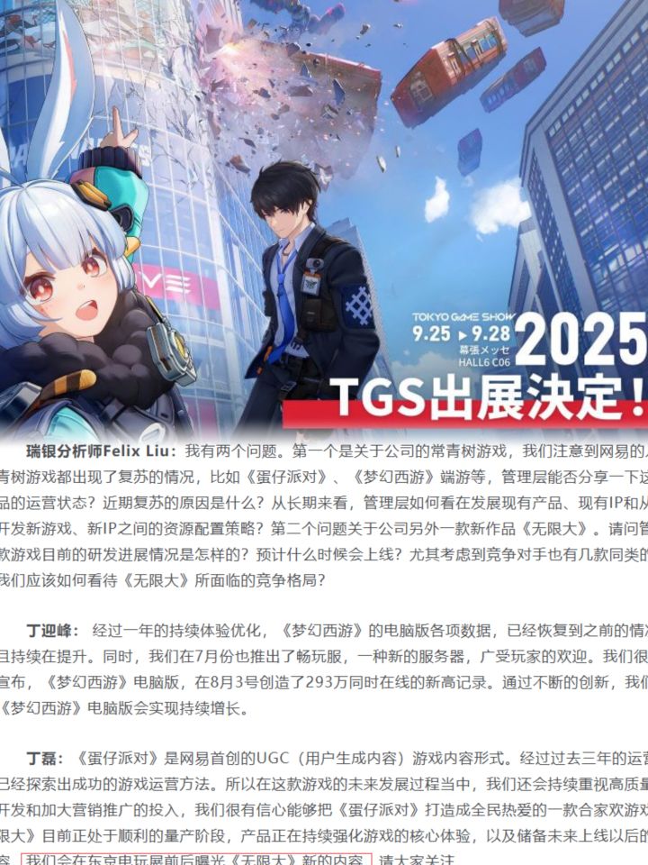 ‼️✅️根据此前一些信息爆料,《无限大》官方很可能会在TGS2025展会上放出全新的内容。外界普遍猜测《无限大》或将在展会期间开启新一轮封闭测试招募,甚至公布全球上线计划‼️