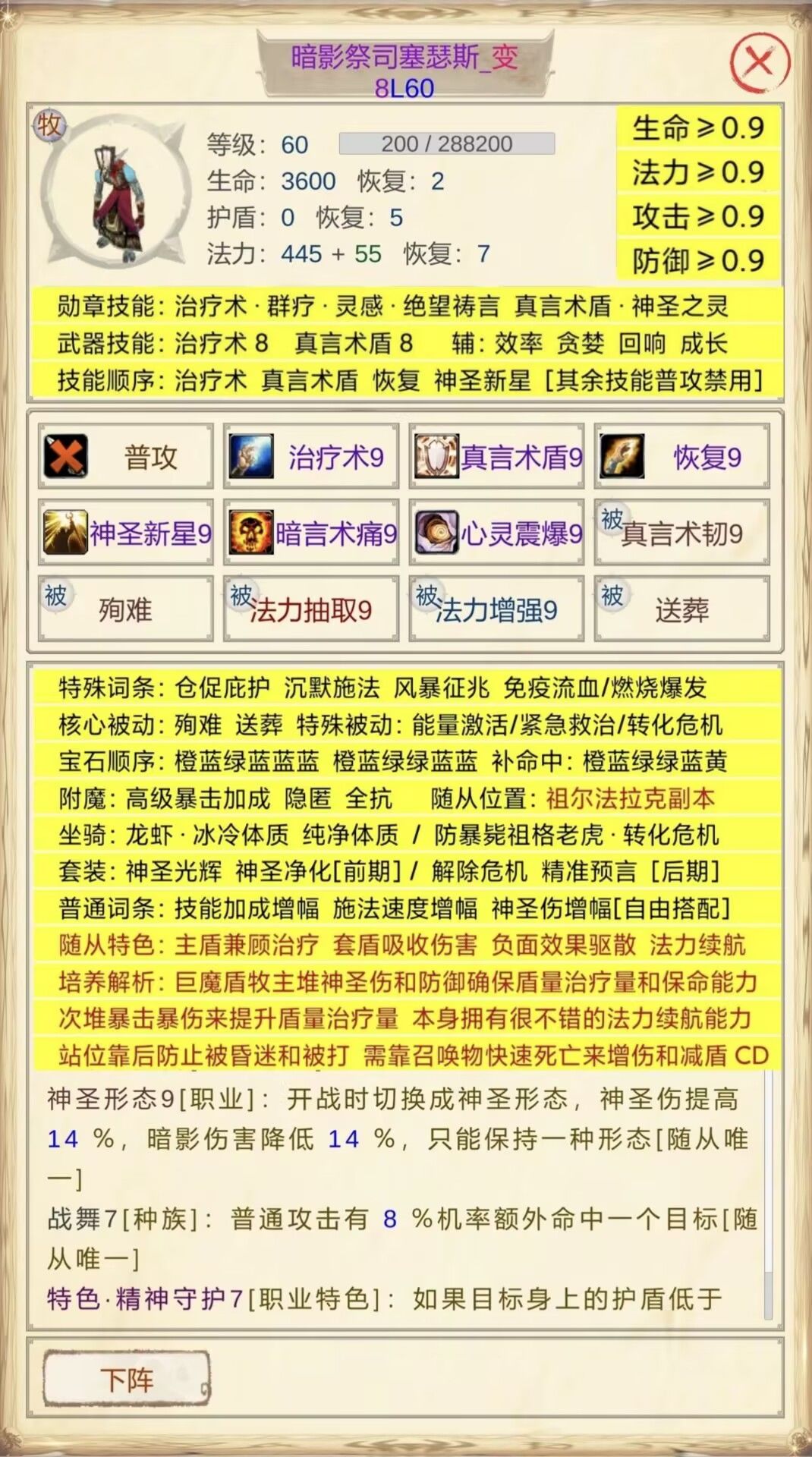 - !!!最关键的一点:把自身技能【治疗术】、【真言术盾】禁用,使用武器上的技能。