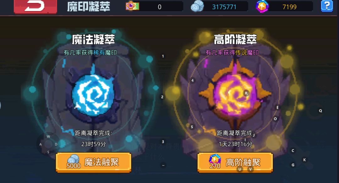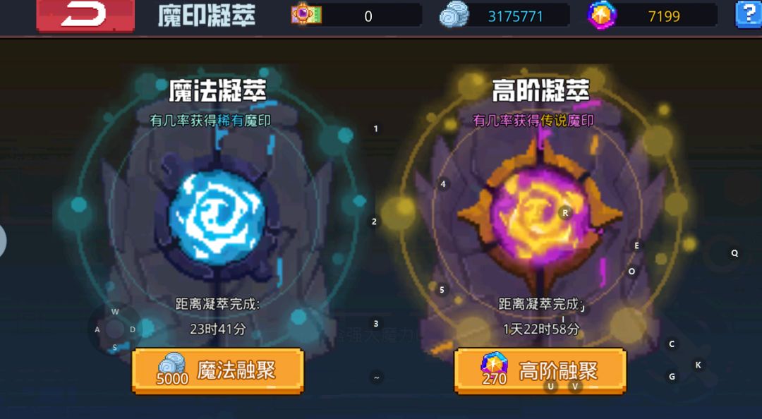 3(推荐免费单抽).抽魔印神柱任意一个凝萃(魔法凝萃出白蓝,高阶凝萃出紫橙)