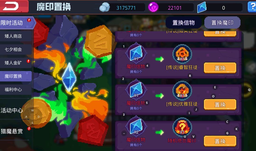 2.在限时活动-魔印置换可以用俩个魔印信物换取一个随机红色魔印(有概率出魂印)