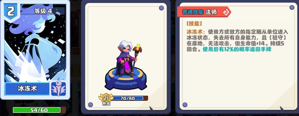 法师的技能效果主要是自身的控制效果还有持续输出的伤害,火球术打出持续伤害,冰冻术控制敌我随从,解牌小高手,属于一个可攻可守的角色,现版本物抗随从较多,还是比较吃香的,总体来说该职业比较吃玩家操作和策略意识