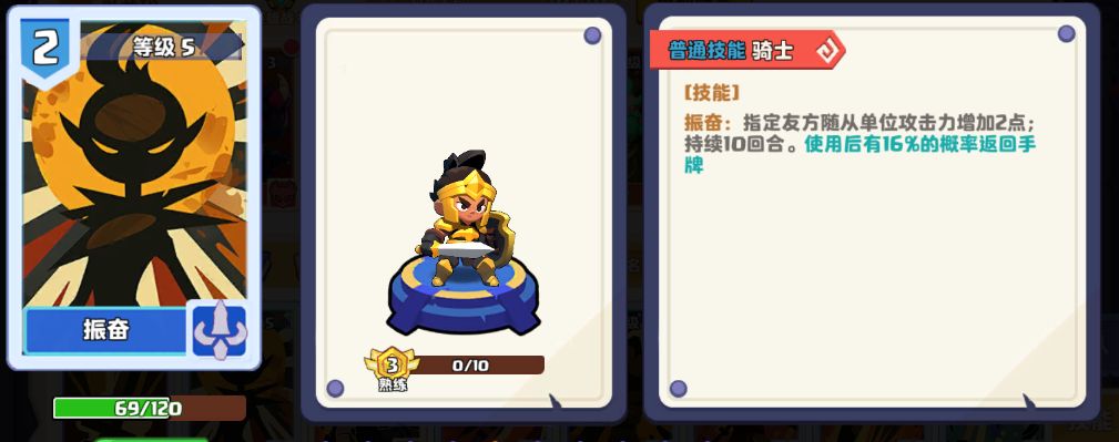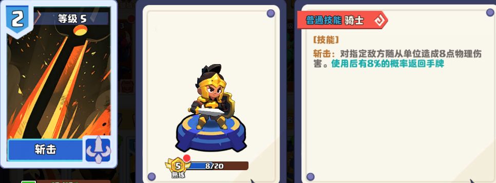 骑士的主要技能效果是给英雄加高额伤害,搭配上高伤随从打的对面措手不及,快速突脸水晶拿下胜利。