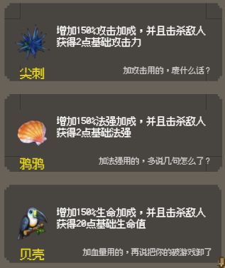 这个会增加大量的最大生命值,并且造成伤害,缺陷就是没遇到鹏哥前没什么用