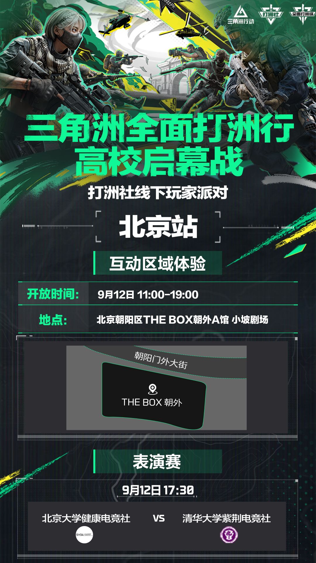 9月12日11点~19点,全面打洲行将落地北京The Box,来线下打洲派对参与互动领周边,看清北再次约战三角洲,线上直播将于17:30全平台开启!活动现场还设有琳琅天上招聘处哦……