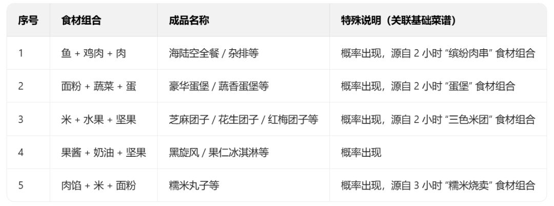 大概率出现隐藏菜谱