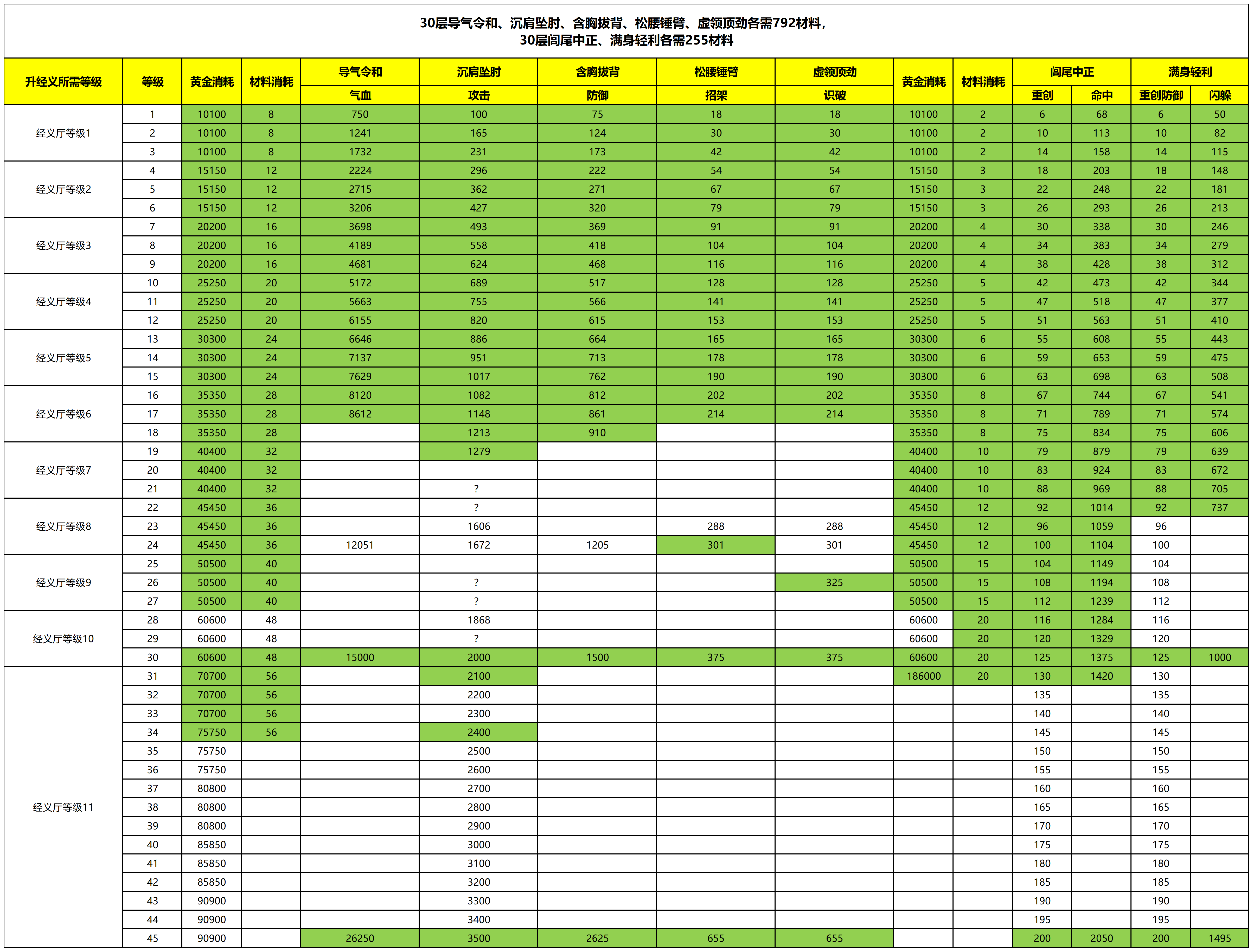 【联盟记录】联盟经义厅升经义消耗及属性
