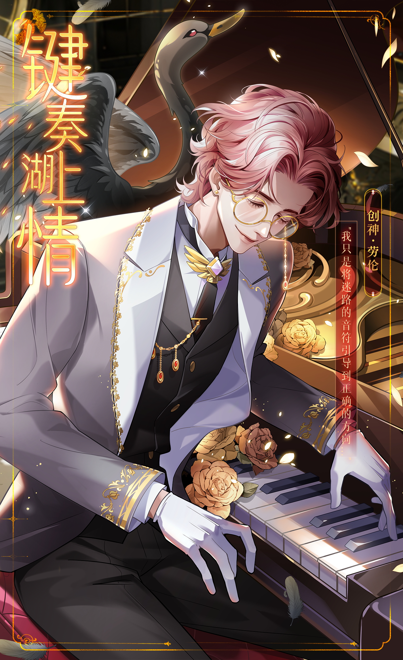 他闭眼垂睫,金边镜框下的唇畔噙着温柔笑意,清悦的琴音仿佛为所有的音符都镀上鎏金。在他清瘦的身形旁,黑色的天鹅引吭高歌展翼如夜帷,而他是帷幄中央最闪耀的白月光——用这黑与白的跳跃,编织一场永不醒来的梦。