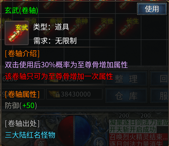 三大陆掉落【青龙、白虎、朱雀、玄武、致命、血牛、暴君】,这七种卷轴30%强化成功率