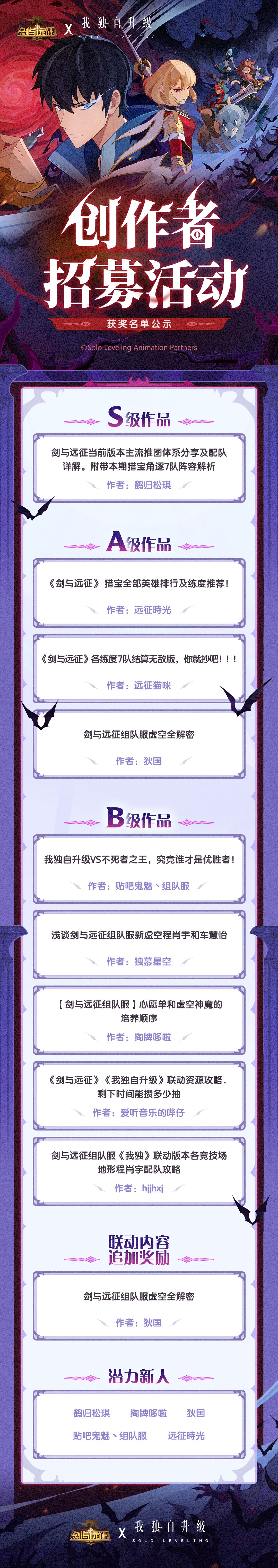 《剑与远征》×《我独自升级》创作者招募活动已正式结束!