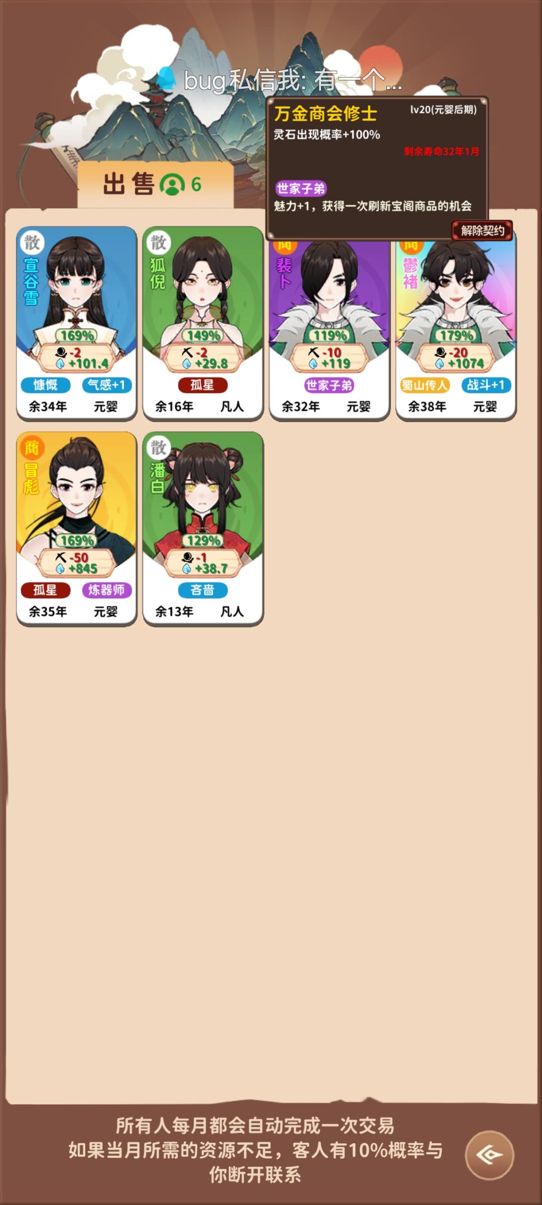 资源或灵石不足,可选择放弃一部分交易断尾求生,保全大局。