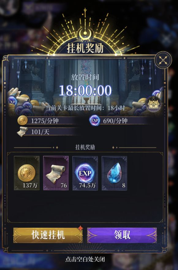 通过更多的主线章节后,会解锁更长时间的挂机奖励上限,挂机效率也会随着推图进度增加。