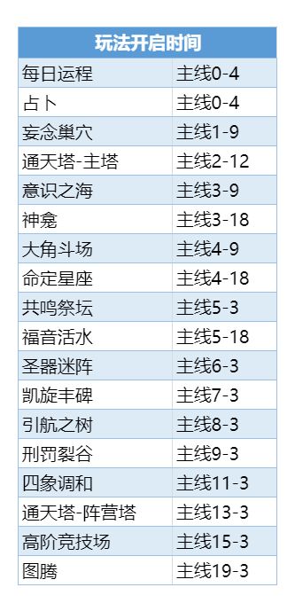 💡 各玩法开启时间