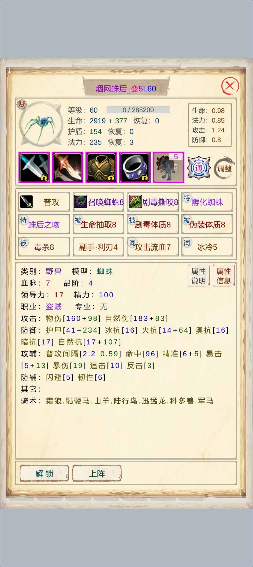 - 我通关好久以后,想起来可以把蜘蛛稍微培养一下,才给打了宝石,发现输出真心给力。