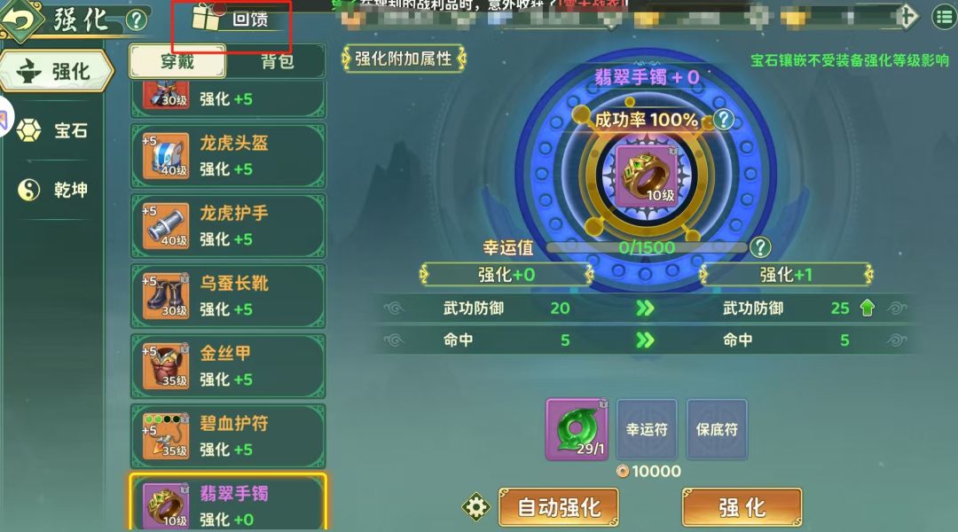 升级到强化装备的时候,发现左上角有一个装备回馈
