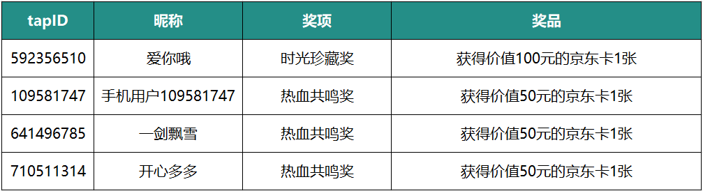 - 热血共鸣奖(3名):每人获得价值50元的京东卡1张