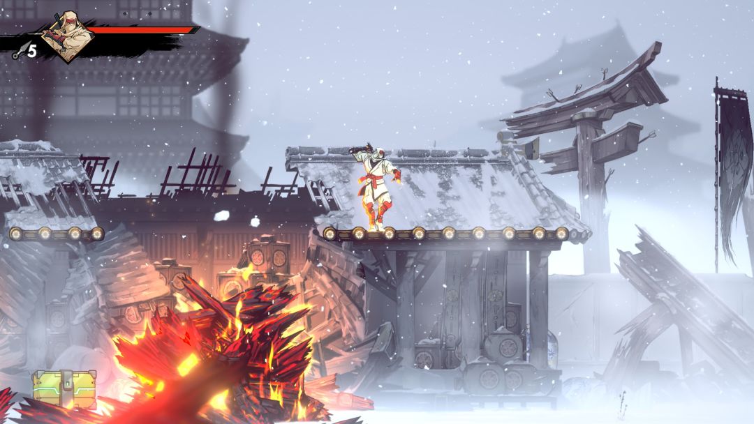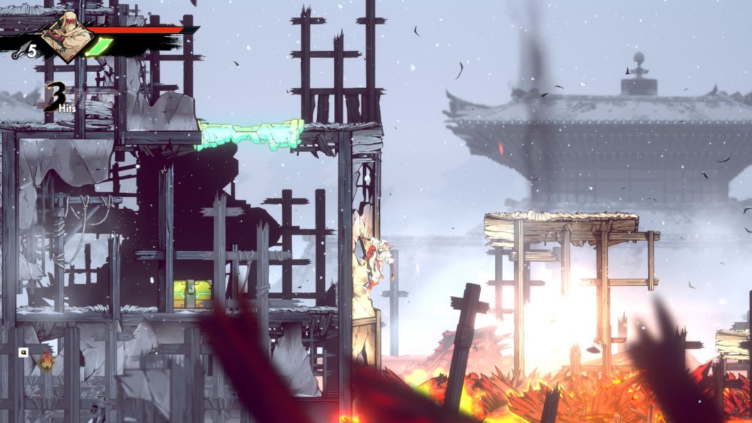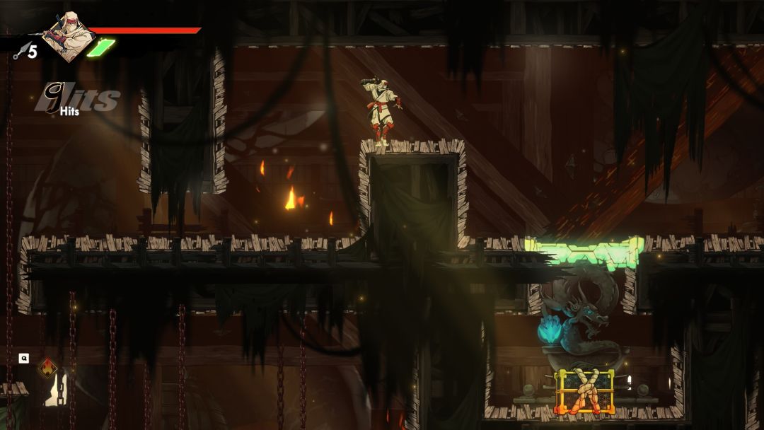 游戏中除了左右墙壁的两面攀登之外,还可以通过跳跃到墙壁上,长按向上攀登几步,贴墙也会缓慢滑落,跳起来闪过敌人的疾影闪在前期就能解锁,同样在地图关卡中你会遇到各种障碍物和陷阱,挡路的木箱,需要跳过的火堆,布满倒刺的墙壁,前期无法到达的隐藏地点和无法破坏拿到奖励的地点等等,有点类似银河恶魔城类游戏的地图设计。