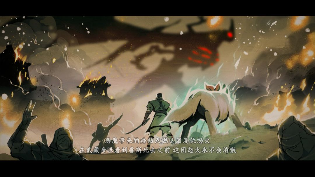 游戏画面回归了2D横版的塑造方式,如果你曾经是该系列的粉丝,那么你一定熟悉本作中很多的细节设计,主人公乔·武藏一身白色忍者服,腰缠红色腰带,经典的背后拔刀与曲膝姿势,首先就能将你带回到那个系列IP的怀念之中。但是人物立绘的动作姿势有些奇怪,整体像比较夸张的漫画风格,只能说对话时出现的立绘美术并不符合我个人的审美。