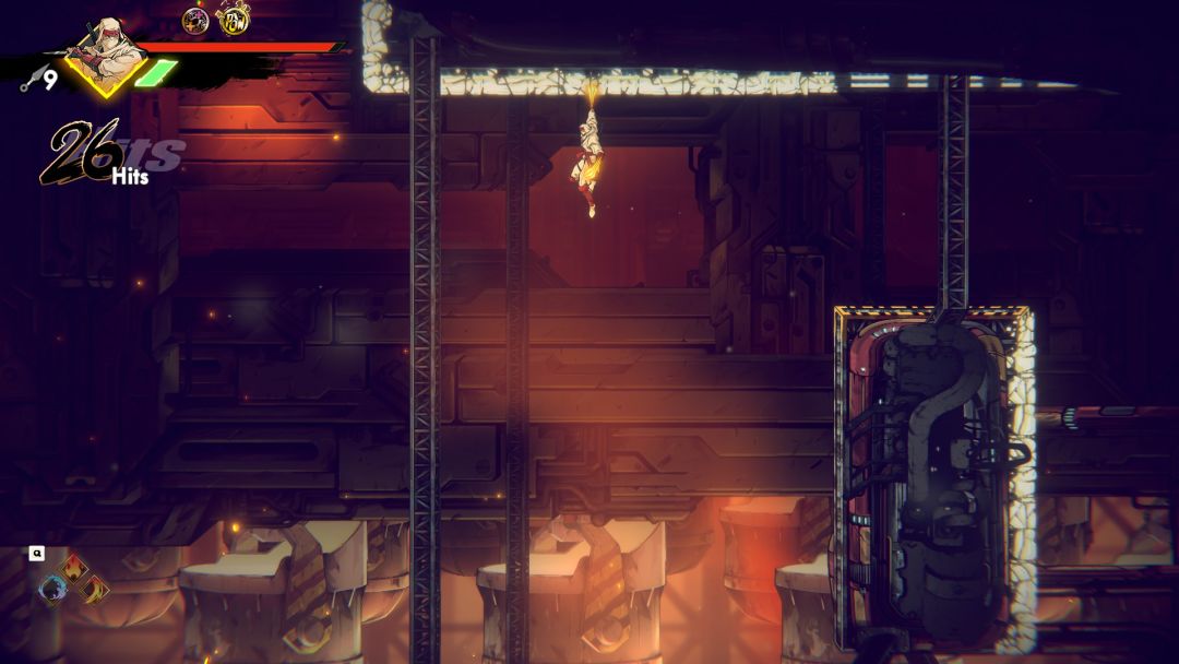 当然或许你是横版动作游戏的老油条了,但总有新手会在操作上遇到问题,该游戏有着十分详细的操作引导,甚至新的关卡也会给予一些提示,首先就是我们熟悉的二段跳,在二段跳中本作有着长按跳的更高的一个机制,这就让你的跳跃也有了操作区间,快速二段跳的高度自然没有长按之后进行一个二段跳的高度高,战斗上可以用来打击高处平台上的敌人,而本身不到达平台之上,而体验上来说不管你用什么方式跳跃时的动作感觉流畅丝滑,并不会有停滞僵硬的情况出现。