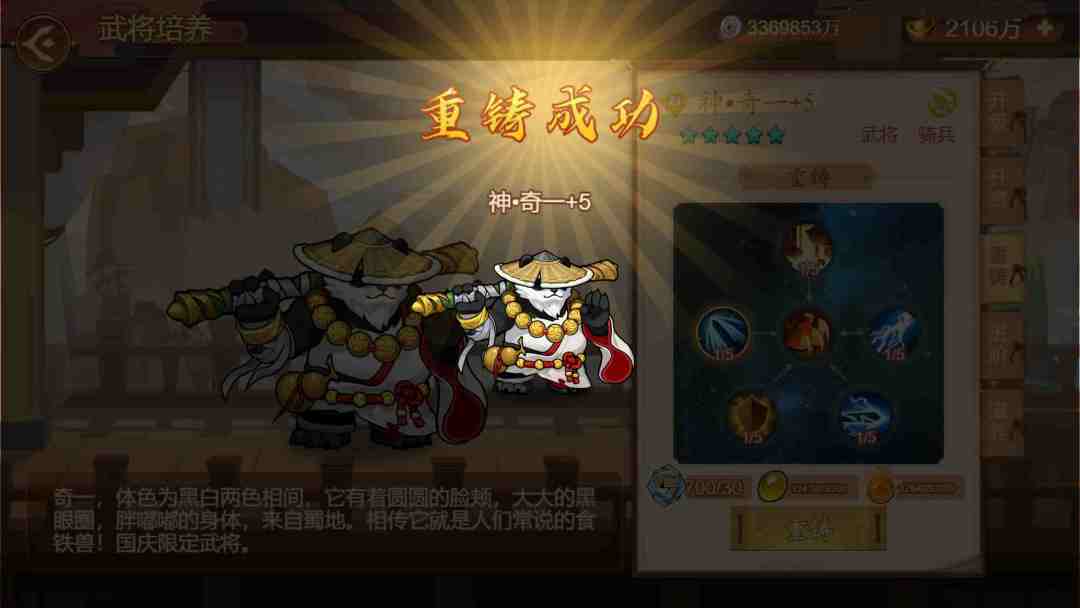 奇一:国庆专属武将,重铸养成增强战力,解锁新形象。
