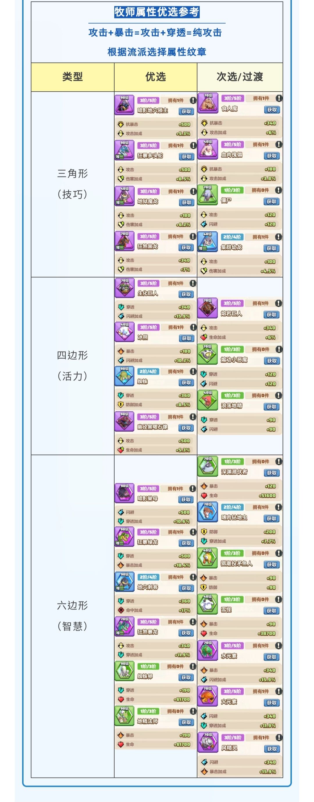 3、纹章选择:以职业为准、跟进职业需求属性进行选择。