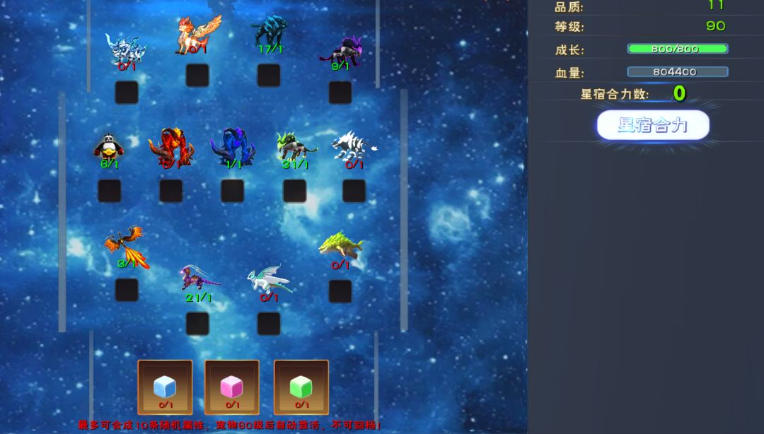 星宿合成要不同的宠物灵和3种糖,星宿词条最多10条,对应的宠物灵也要不同的10个