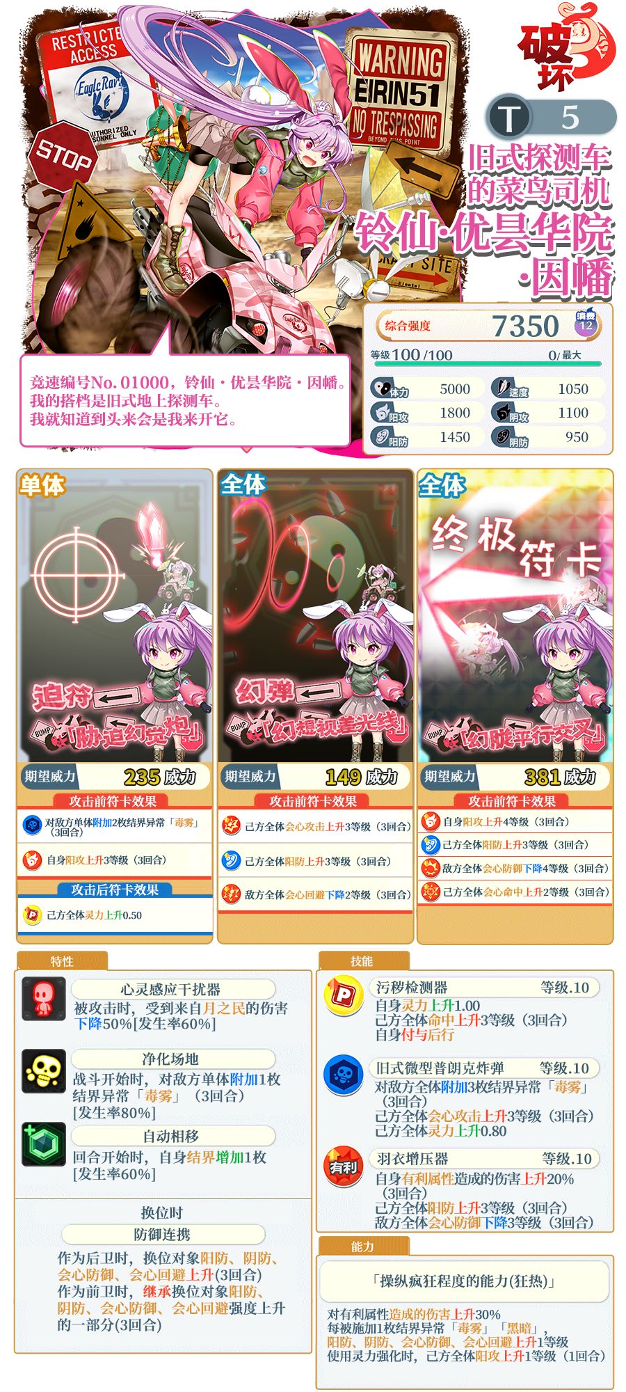 ※「旧式探测车的菜鸟司机 铃仙·优昙华院·因幡」需要使用同名伙伴或者「天之替身」进行界限突破。不同泛异记号的伙伴、「天之替身」以外的替身无法对其进行界限突破。