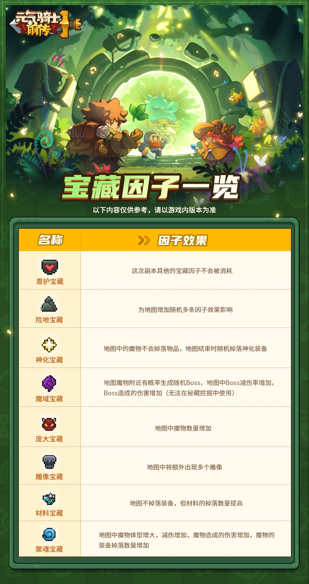 宝藏因子可为因子模式添加特殊的因子效果,小骑士可以同时选择多个宝藏因子进入因子关卡。建议小骑士合理搭配使用宝藏因子与挑战因子、奖励因子进行挑战哦!