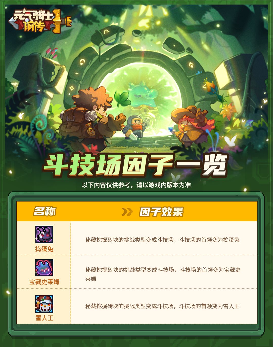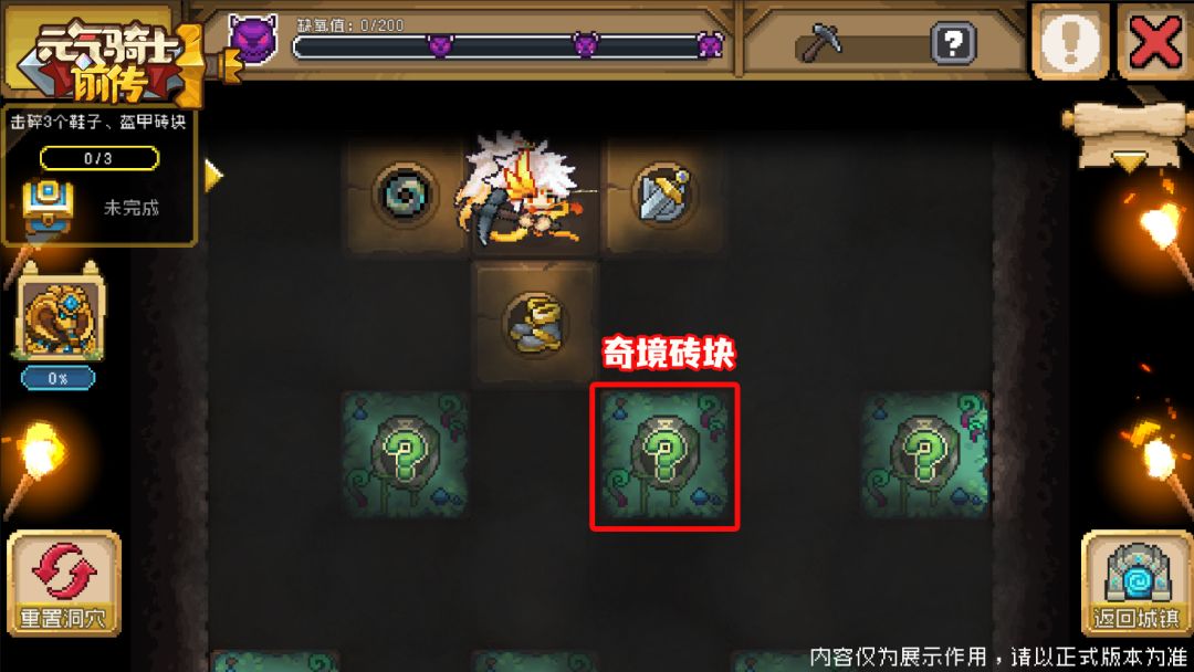 我们还在任意难度下的秘藏挖掘里,新增一种砖块类型:奇境砖块,敲碎奇境砖块可直接进入因子关卡,因子关卡的生成没有上限,一天可进入任意次因子关卡,小骑士可以爽刷啦!