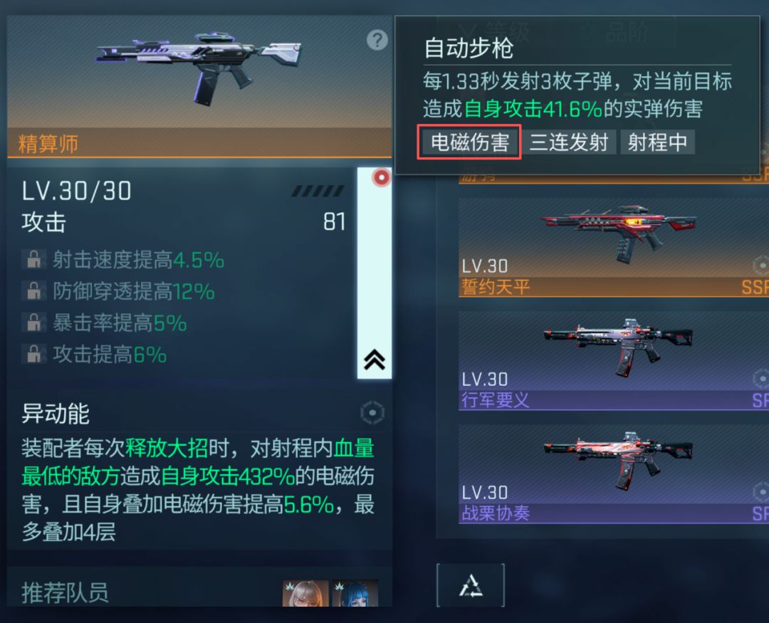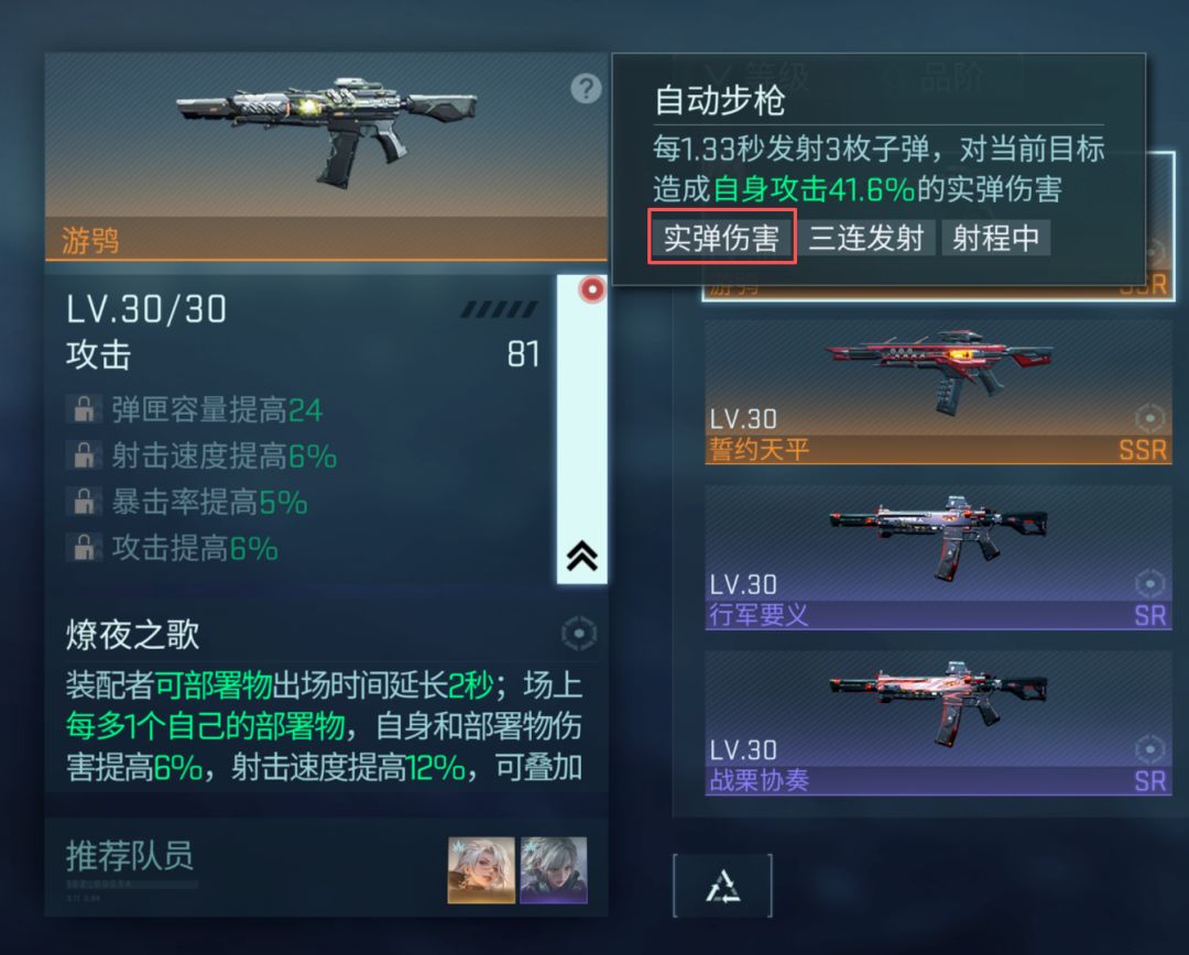 - 提供的配件效果种类越多:如SSR可激活4种(如射速 + 穿防 + 暴击 + 攻击),SR可激活3种,R可激活2种;