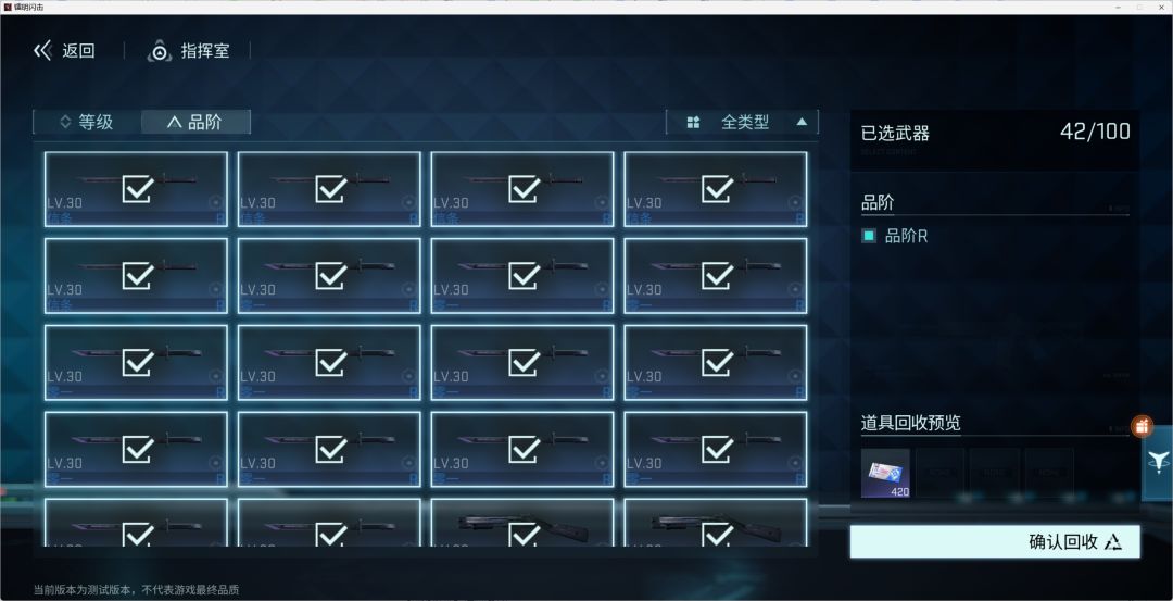 用不上的武器可以通过「武器改装台→右下角回收按钮」处理,还能按品阶批量操作;