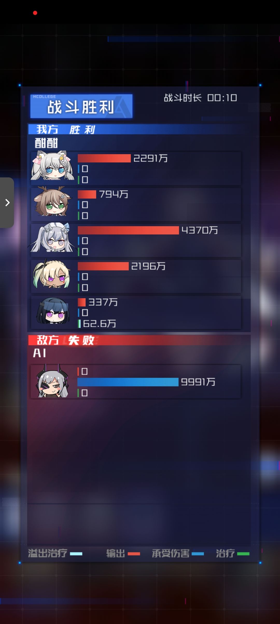 先说结论,几乎0练度的可洛居然比我主c的猫猫伤害还高。测试过程:参加可洛活动的领主挑战,队伍配置如图所示,一律为关卡三难度的领主,第一和第二个领主的伤害可洛大幅高于猫猫,第三个领主有针对于可洛的debuff,减机械伤害和暴击伤害,但是依旧打出不弱于猫猫多少的输出。PVE推荐拉满。