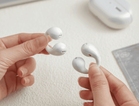 很多开放式耳机在佩戴舒适度与音质表现上往往难以兼顾,要么因夹耳设计带来明显不适,要么音质粗糙影响听感,而南卡却打破了这一行业局限,为用户打造出兼顾多方面的优质体验。它搭载的BUF环扣人体工学设计与C-Hook2.0佩戴方案,宛如为耳朵量身定制一般,搭配亲肤柔软的硅胶材质,能够精准贴合耳廓曲线;再加上单只仅5.3g的轻盈重量,真正实现了“0压0感”的佩戴效果,即便长时间使用也不会产生酸胀感,彻底解决了传统耳夹式耳机佩戴不适的问题。