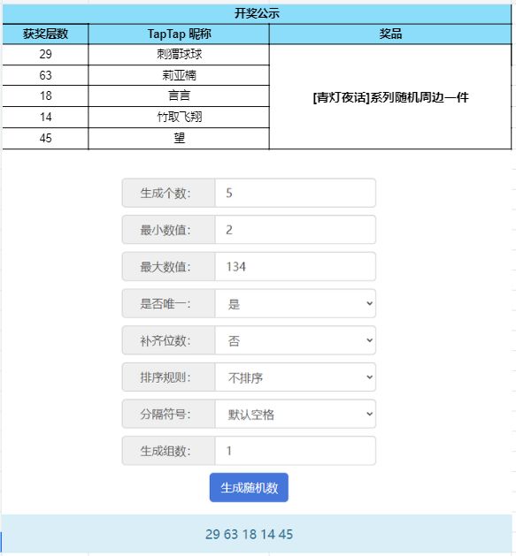 根据开奖结果显示,恭喜以下幸运的玩家们获得奖品: