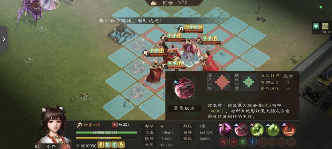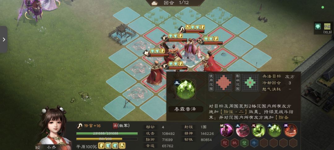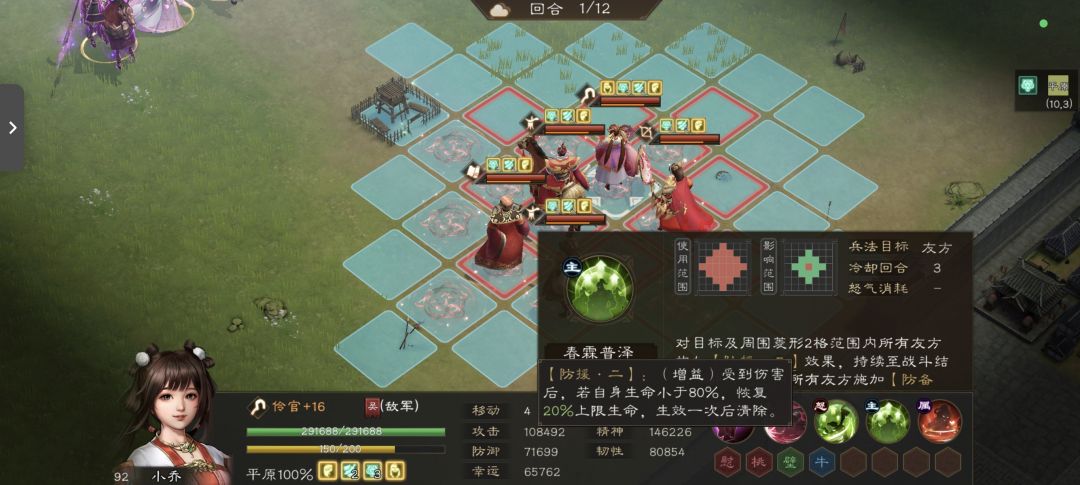 - 技能2·春霖普泽:为范围友方施加“防援二”(持续至战斗结束),同时附加“防备二”“严明二”“吉运二”(均持续2回合)。